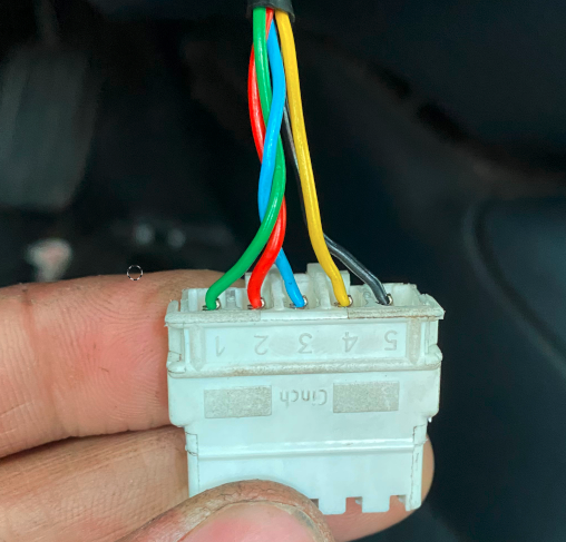 1 - Brancher le fil 17 qui part du calculateur au fil bleu numéro 3 de la prise du commodo. 2 - Brancher le fil 60 qui part du calculateur au fil jaune numéro 4 de la prise du commodo. 3 - Brancher le fil 61 qui part du calculateur au fil noir numéro 5 de la prise du commodo. 4 - Puis connecter/lier les fils 1 vert et 2 rouge ensemble et les connecter au boutton on/off d’origine peugeot à sa borne numéro 2.