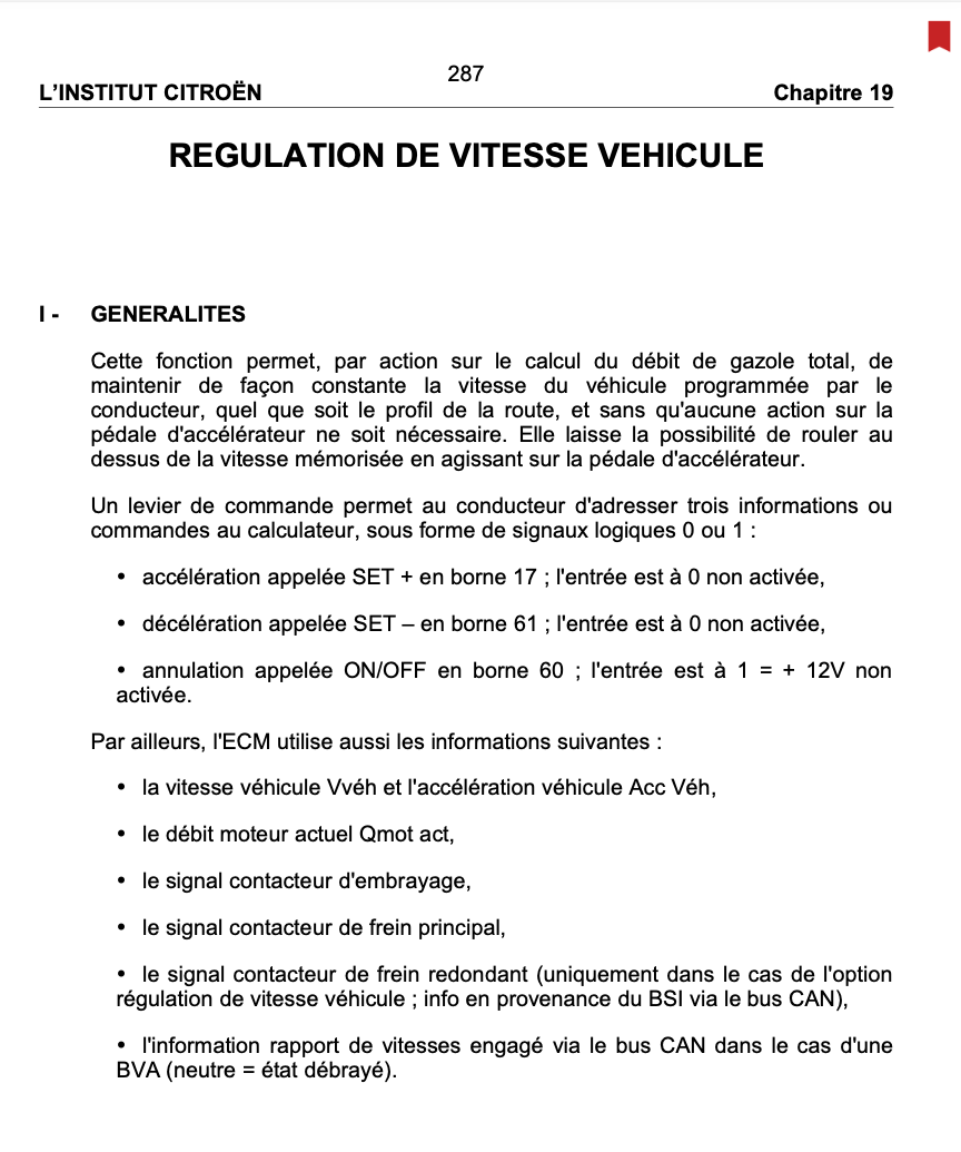 Le calculateur EDC15 possède 88 voies, ses bornes ont toutes une fonction précise, voici les bornes qui gère la régulation de vitesse pour votre véhicule :