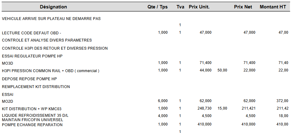 J'accepte le devis pour échange ou réparation de la pompe HP avec le changement du kit de distribution (1400€)
