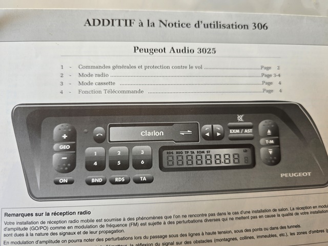 J'ai 1 notice qui correspond à un Blaupunkt 3040 (commande au volant) et un additif qui correspond à un Clarion 3025.