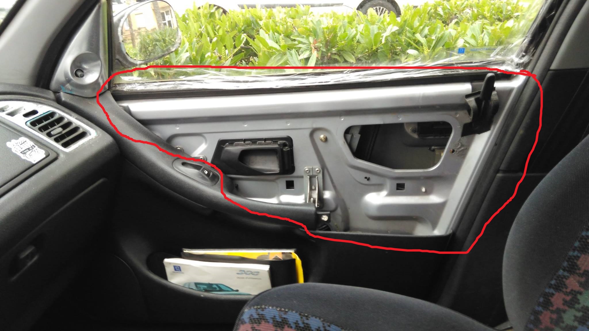 Salut, je voie qu'il te manque aussi l'isolant de porte. Tu doit avoir un film étanche collé pour boucher le gros trou. On ne doit pas voir l'intérieur de la porte avec la panneaux de porte demonté.