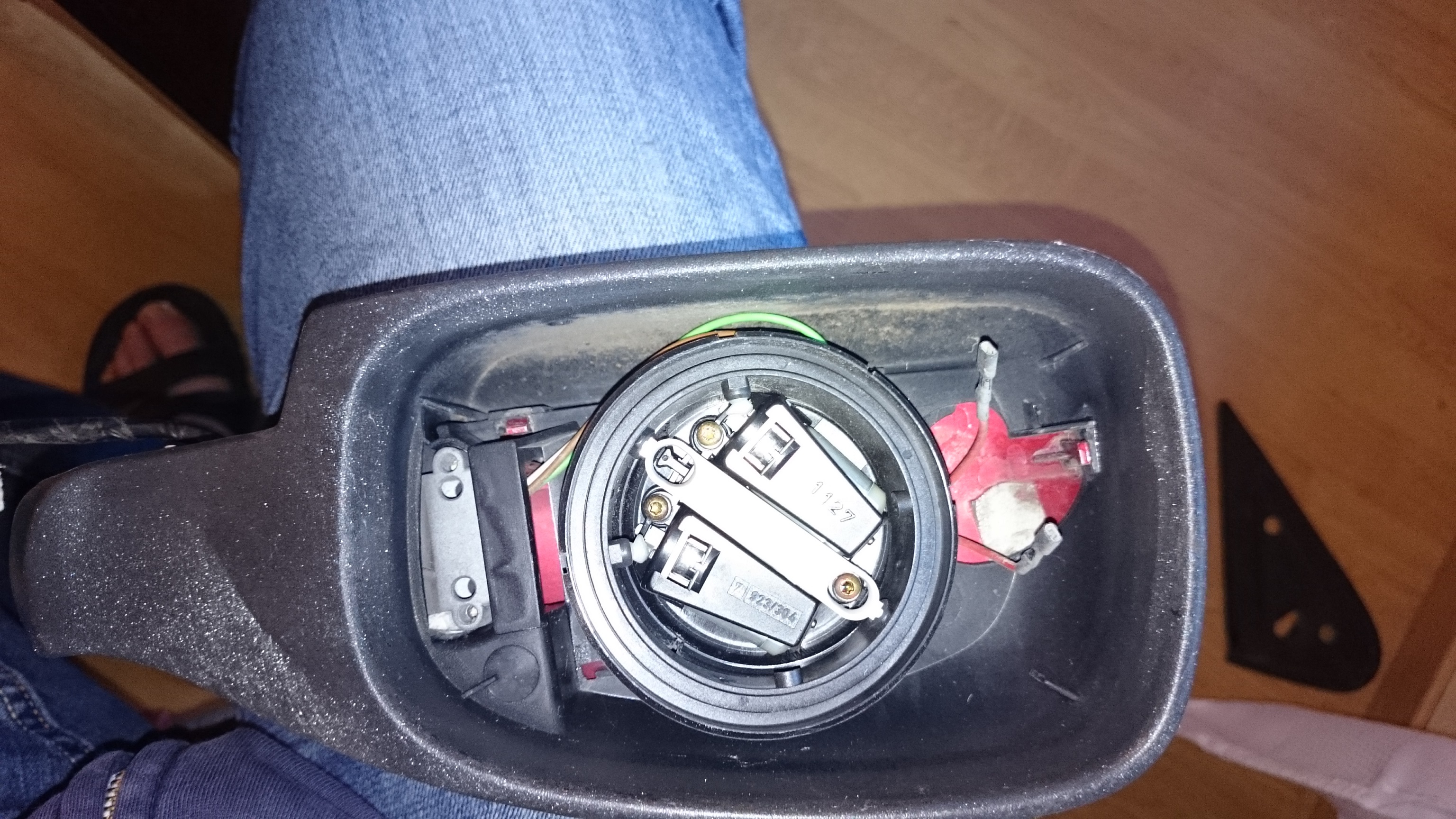 De là, vous avez accès aux pattes de fixation de l'enjoliveur de rétro (noir brut, ou peint couleur carrosserie). Vous pouvez donc les défaire sans craindre de les casser. A noter que les fils rouges qui font le dégivrage passent sous cet enjoliveur!!