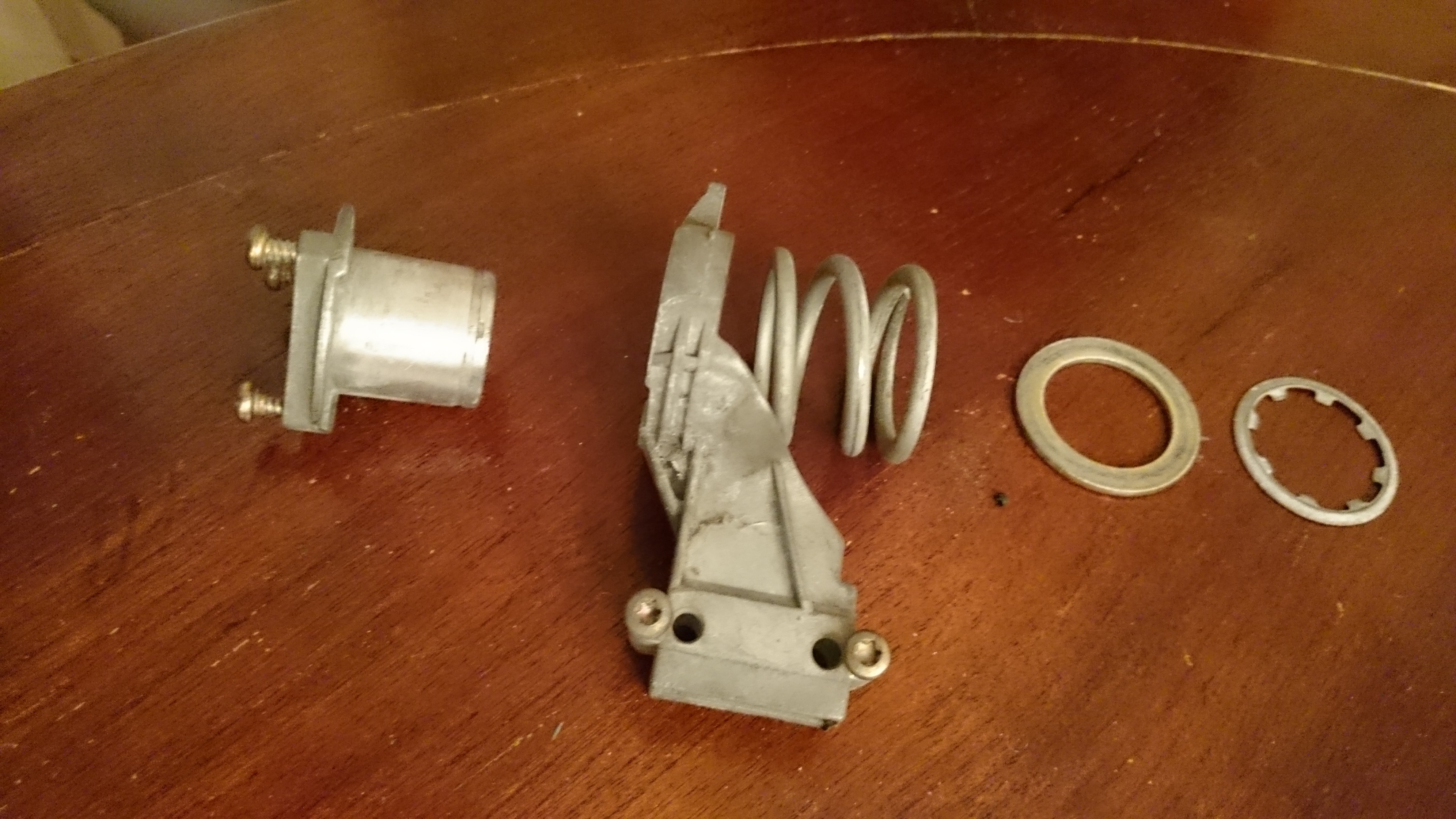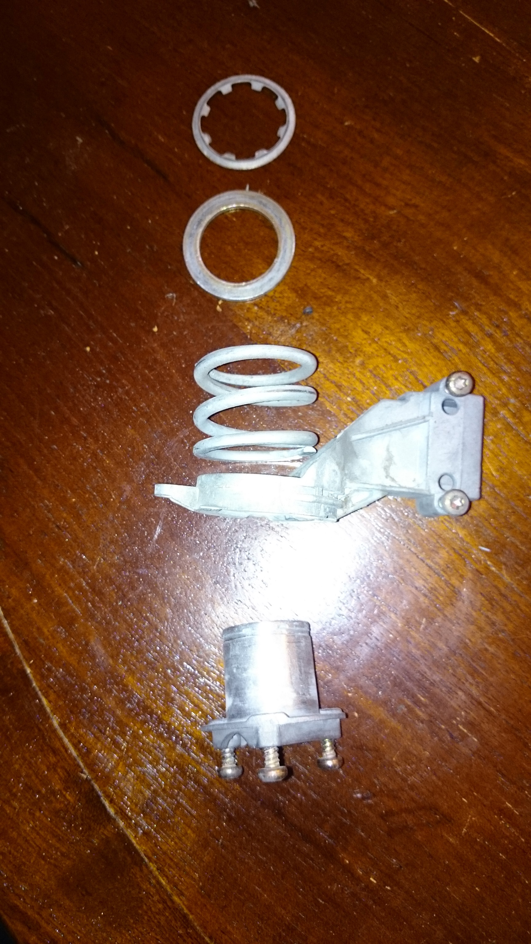 Et là, j'entends un autre bruit métallique Et je récupère un gros ressort, une rondelle plate et une rondelle crénelée ressort.... c'est le système qui fait que l'ensemble est assez rigide et qui ne risque plus de fonctionner dans mon cas