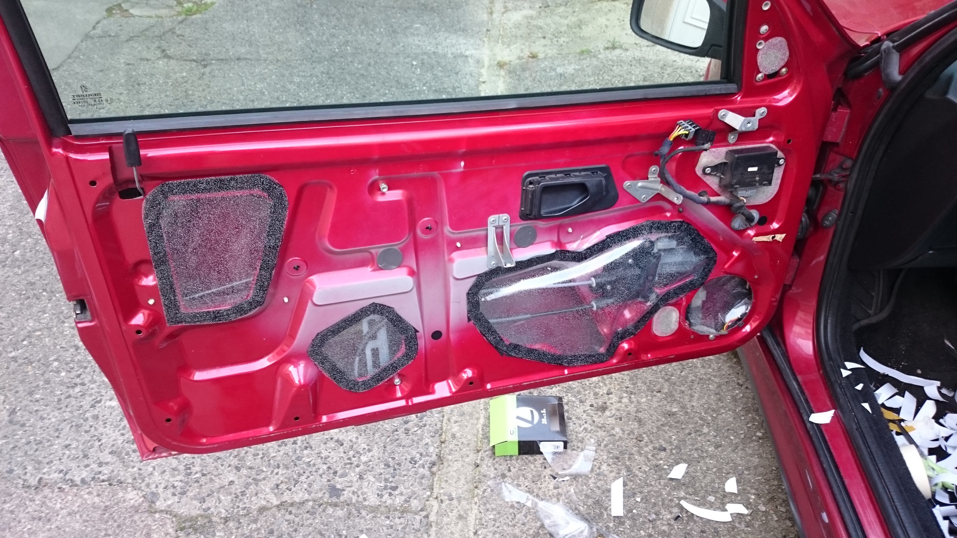 Concernant l'emplacement du HP AV, je l'ai simplement collé au double face, côté intérieur de la portière. Il est possible de faire un peu mieux en démontant le moteur et éventuellement le rail de guidage plastique de la vitre (qui gêne un peu, bien que n'ayant de grosses mains... ) de manière à coller tout ça bien mieux que ce que j'ai fait....