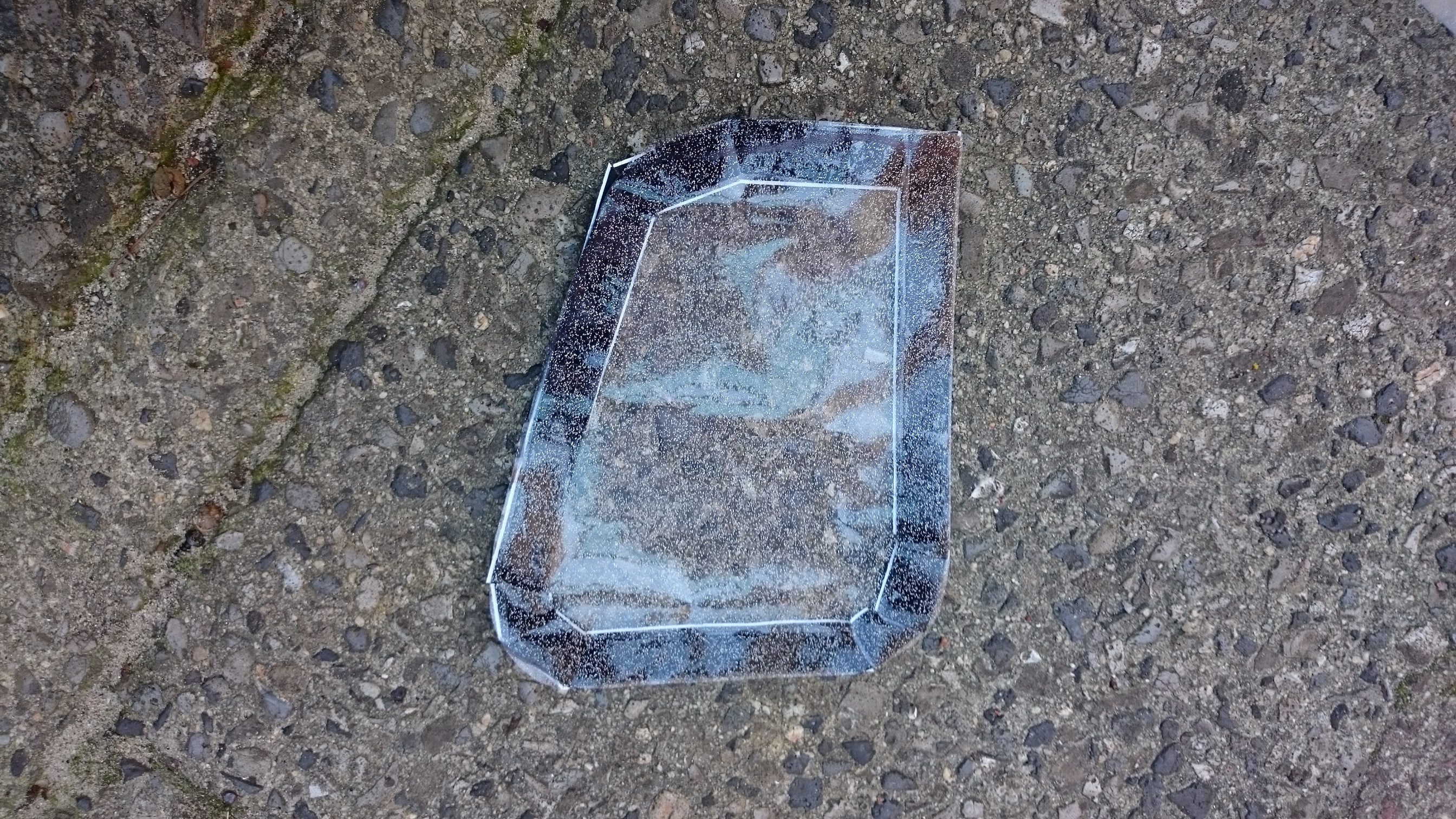 Ensuite, il suffit d'enlever la protection de l'autocollant et de bien positionner le tout sur le trou à boucher! Bien appuyer pour que le côté autocollant accroche bien à la carrosserie (nettoyée au produit vaisselle et bien rincée et séchée au préalable )