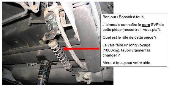 Cette pièce est un régulateur de freinage, plus la voiture est basse de l'arrière, plus le ressort se comprime...