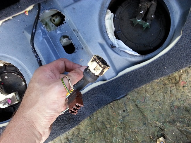 4ème question : En enlevant le passage de câble entre les 2 trappes, j'ai remarqué qu'un connecteur électrique sur les deux était débranché et bien encrassé (ça devait faire un moment). A quoi sert-il? (peut-être la pompe a-t-elle déjà été changée que le connecteur est différent?