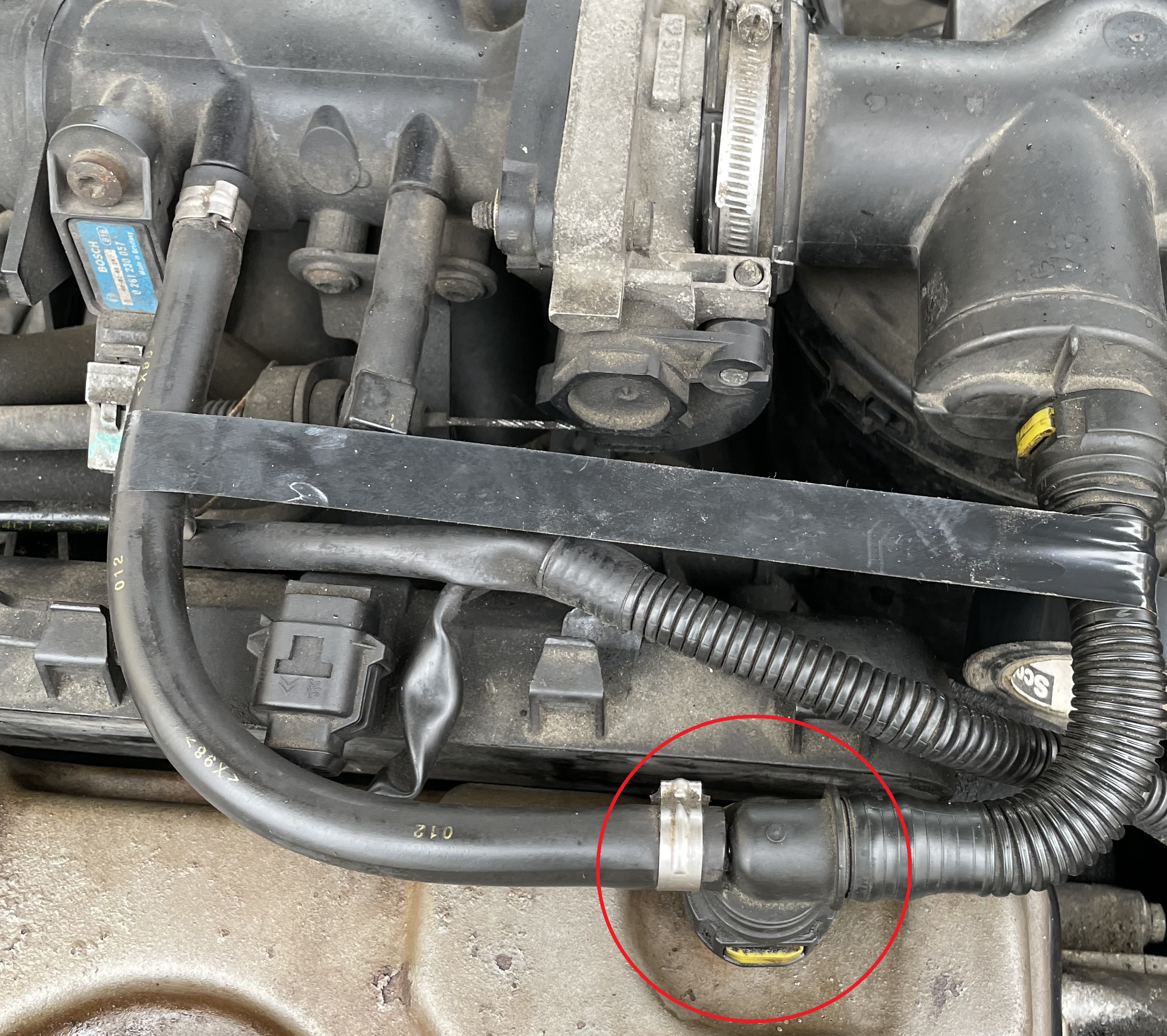 Bonjour à tous, je suis à la recherche du nom de la pièce qui vient se connecter sur le cache culbuteur( photo en pj), merci à tous pour votre aide... :-)