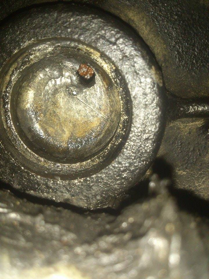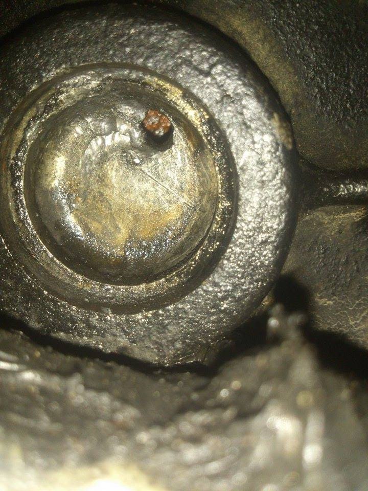aprés avoir changer la bride d'eau je m'appercois que la fuite est toujours présente, donc je remplie le bocal et je me met sous le moteur, et la en passant mes doigts je trouve une belle fuite, HEURESEMENT, elle est située au niveau de la pastille de desablage :D