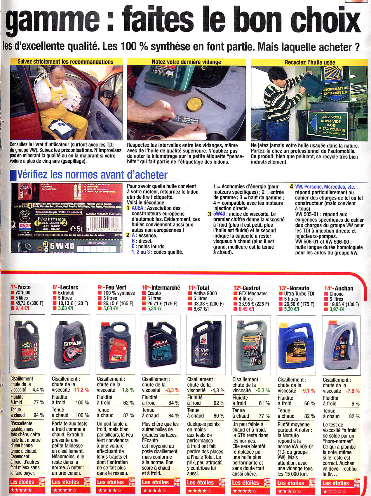 Je suis tombé sur une étude comparative sur les huiles moteurs avec la revue "autoplus"