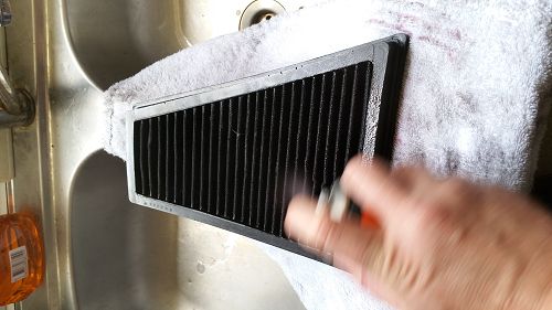 Une fois parfaitement sec, passer à l'étape suivante, vaporiser l'huile sur les parties servant à la filtration en elle même