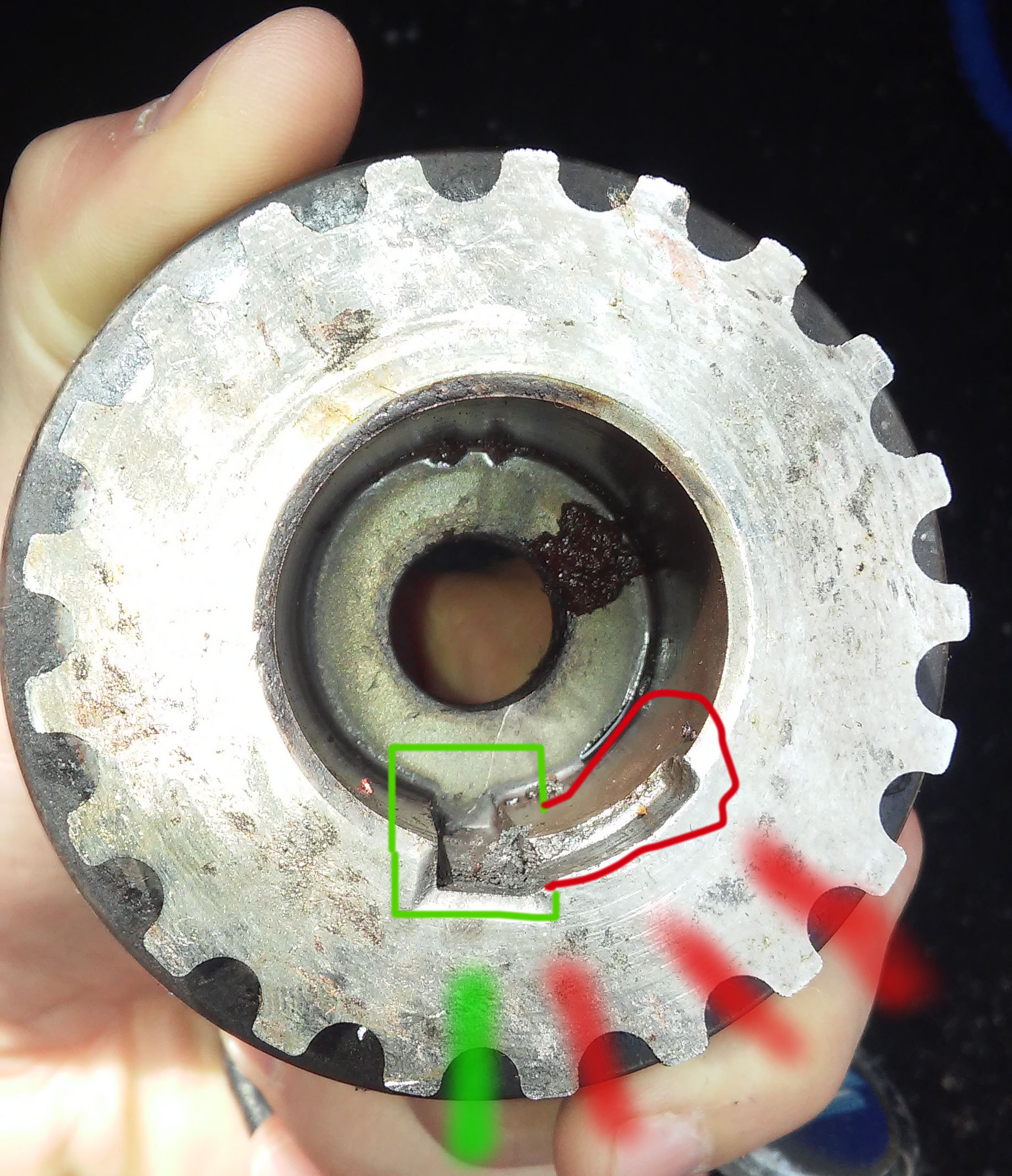 en vert la fente d'origine et en rouge vous pouvez appréciez la partie non prévue qui décalais la courroie