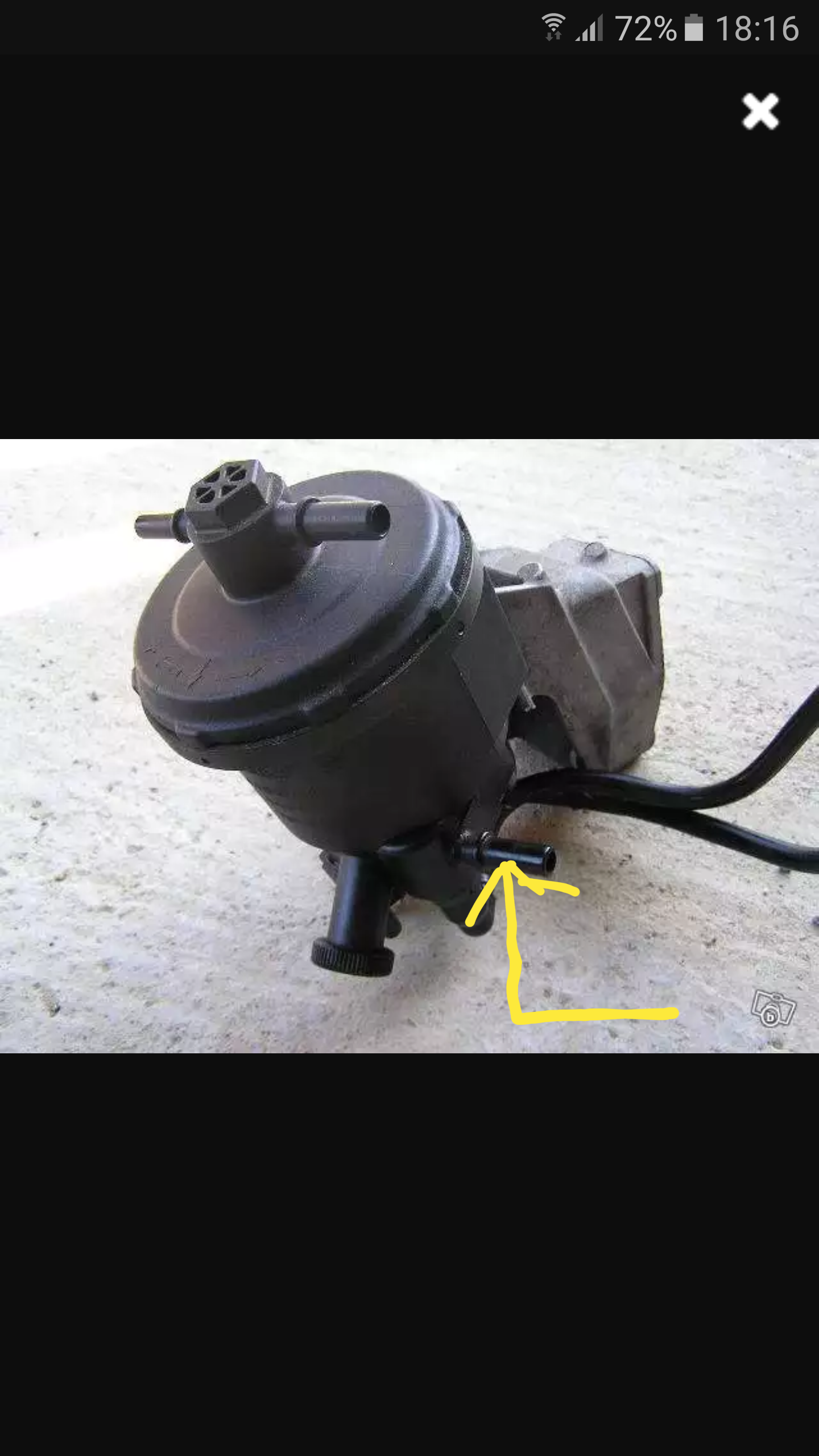 Je pense que c'est la durite d'arrivée de gasoil dans le filtre. Elle est surement serrée par un clips de base, s'il s'est barré, met un collier de serrage