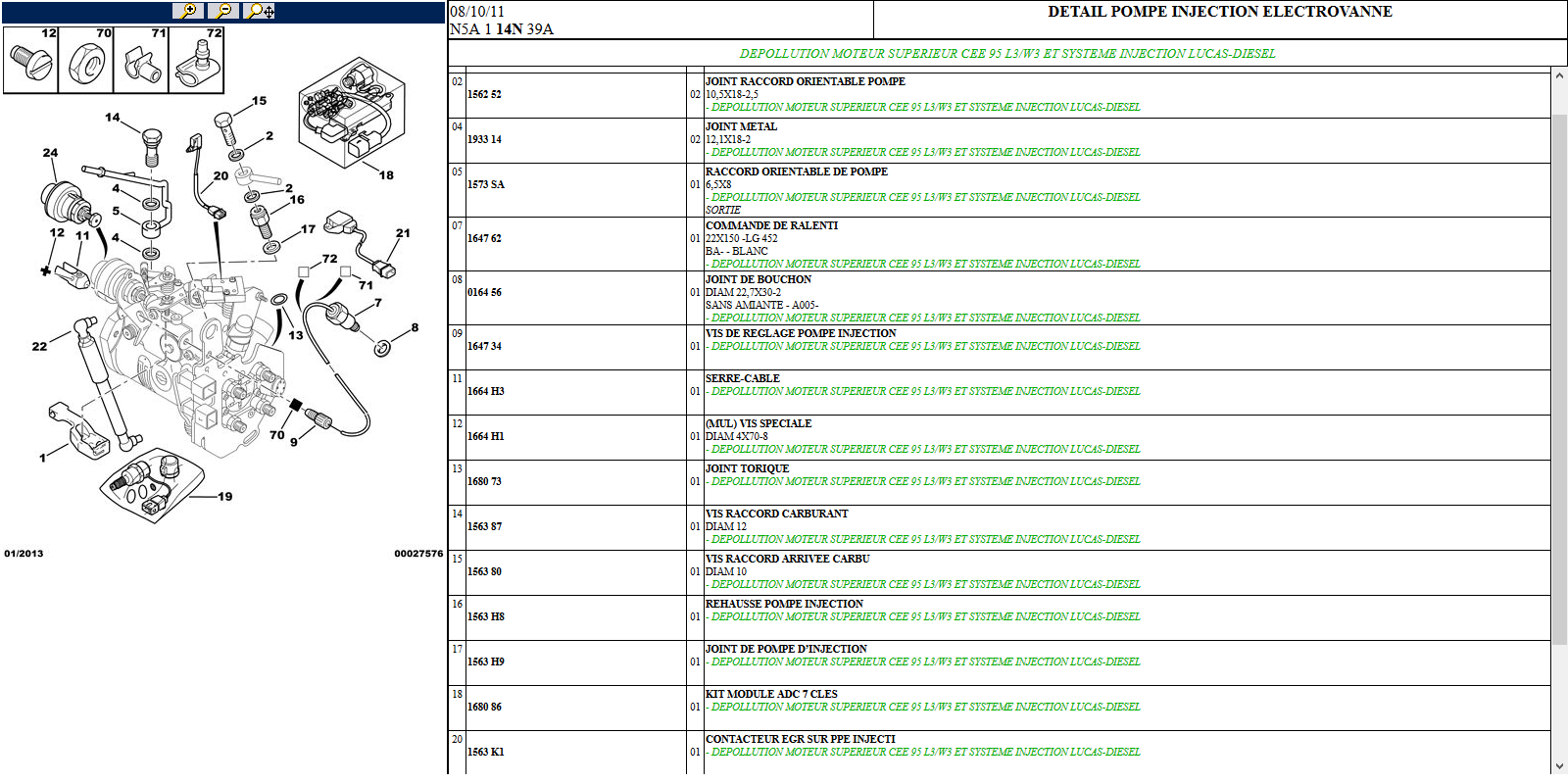 je pense que déja tu peux peut être vérifier l'état de tes joints. Il est pêut être possible de les changer individuellement... Tu dis que y a du gasoil qui remonte le long du poussoir...Ya des chances que ce soit le joint de la pompe qui soit HS...A priori ce n'est pas détaillé sur le plan...si c'est ça, tu es bon pour changer l'ensemble...J'ai le m^me système de filtre /pompe sur le 1.6HDI de madame et quand je change le filtre et que je réamorce le circuit, y a pas de gasoil qui remonte le long du poussoir...ET je dois pomper un bon moment avant que ça ne durcisse dans la doc du HDI de madame, il dise de pomper environ une vingtaine de fois...faut compter un peu plus...