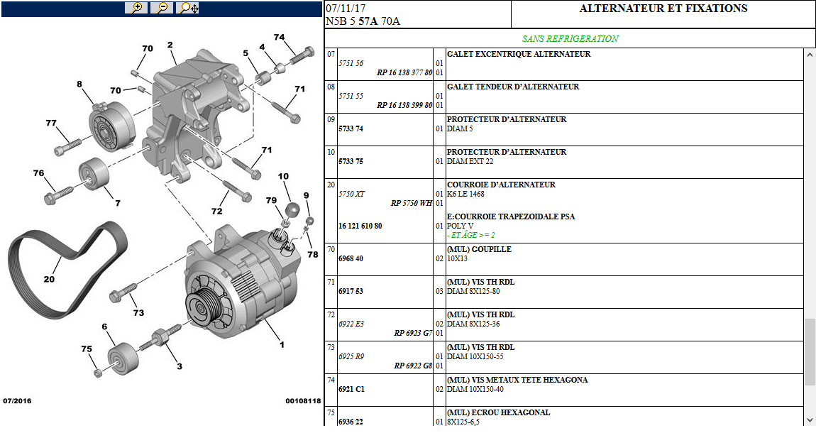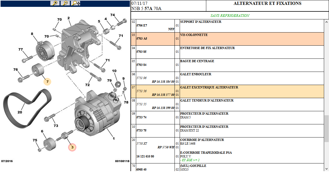 par contre, c'est bien ce qu'il me semblait, il faut changer d'emplacement à ton alternateur....A priori, les supports d'alternateur avec et sans clim sont légèrement différents... En tous cas, ils n'ont pas la même référence...5706E7 pour le sans clim et 5706 E8 pour le avec clim... Je pense que la principale différence réside dans le fait que sur celui avec clim tu as ds emplacements de fixation différents pour l'alternateur...mais pas sûr non plus...il se peut que la forme soit légèrement différente et les emplacements de fixation aussi pour le coup