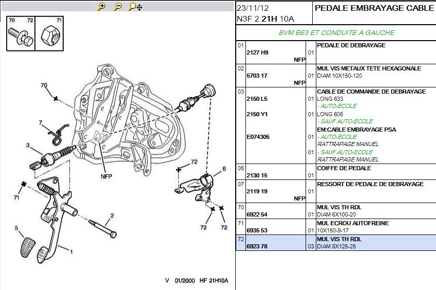 j'ai trouvé plusieurs câbles avec différentes longueurs selon le type de boite (MA ou BE3), mais pas de rattrapage auto... d'après ce que je comprends c'est des rattrapage manuel...je crois qu'il est possible de mettre des rattrapage auto en lieu et place des rattrapage manu, car les fabricants ont fait des équivalents...au moins, tu auras des références Peugeot d'origine pour être sûr d'identifier la bonne pièce (origine ou équivalente).