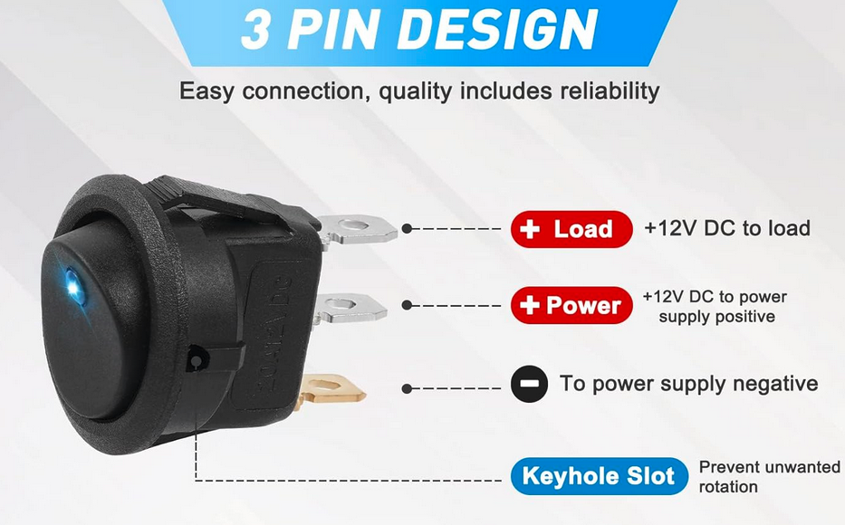 Pour transmettre le courant 12v au commodo du régulateur, mais il n’est pas non plus nécessaire nous pouvons installer n’importe lequel bouton on/off 12V adaptable en remplacement :