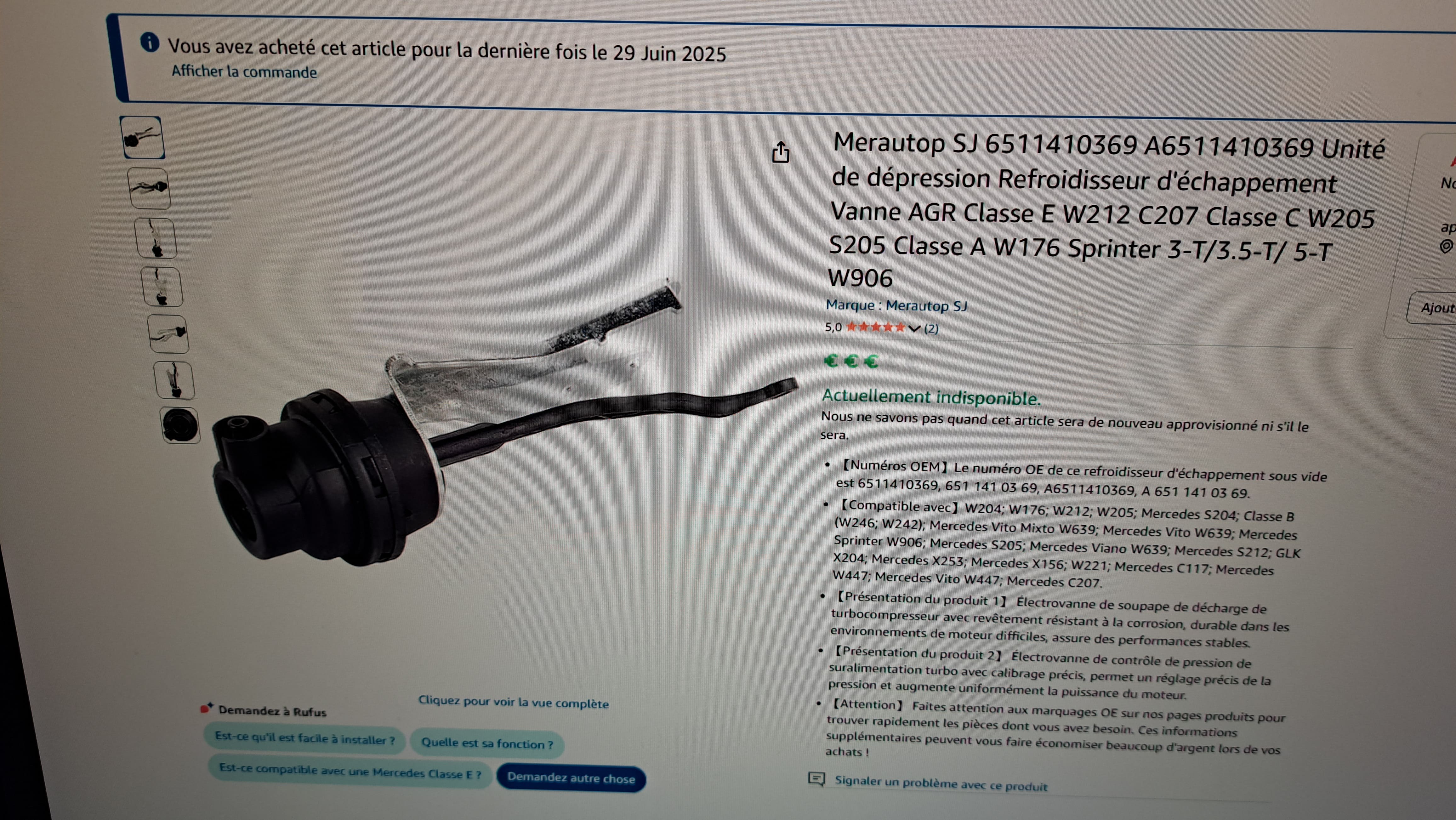 - achat d'un poumon de vanne EGR Mercedes