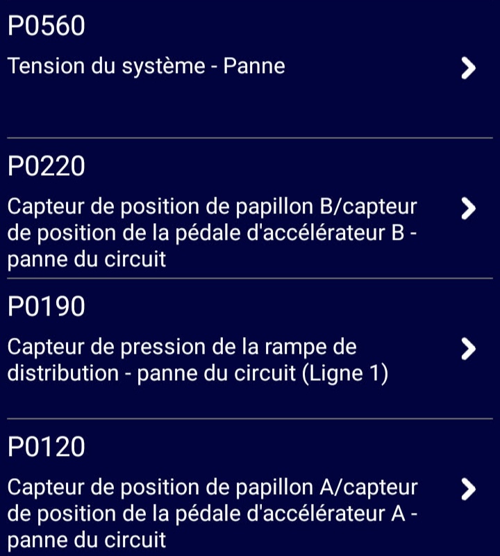 Voilà les codes défauts que ça sors après arrêt.