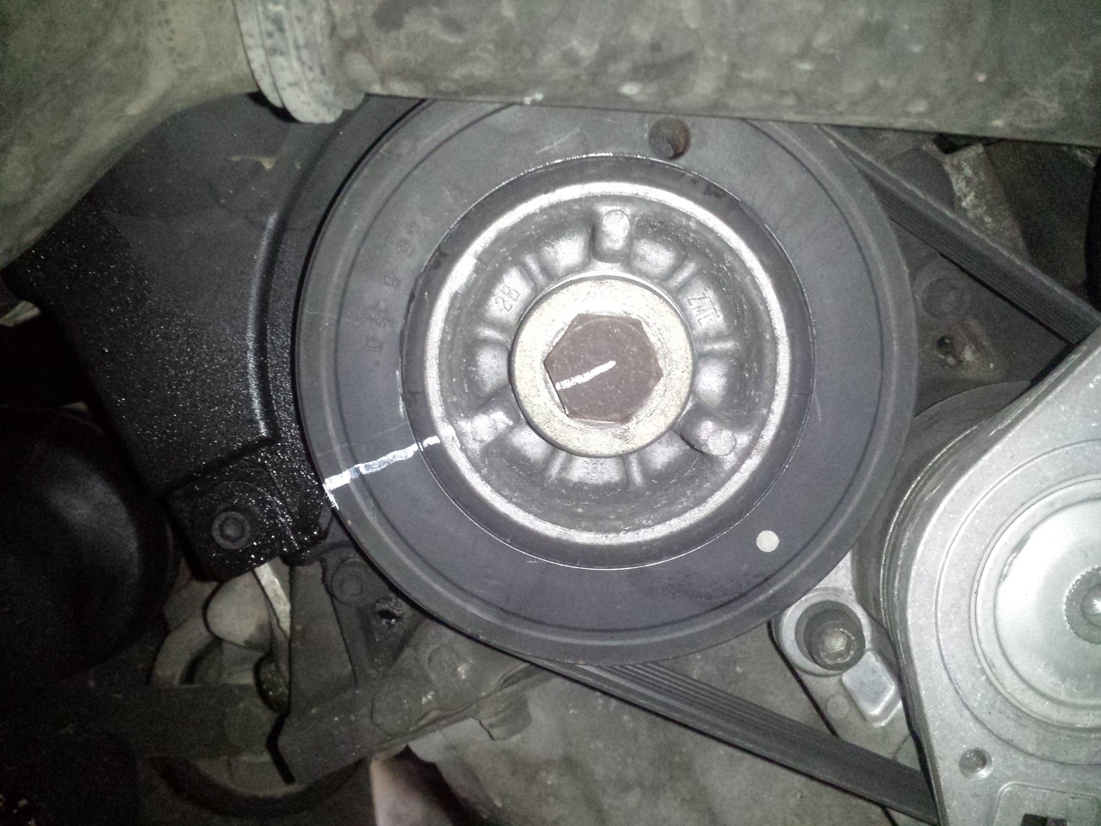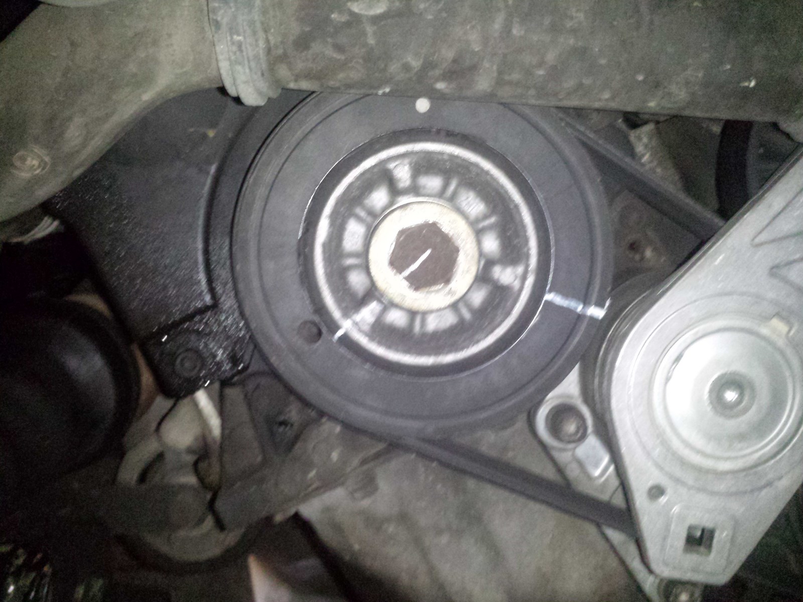 | Pour savoir si ta poulie tourne sur elle même, trace un trait, démarre ta voiture, vas faire un tour puis reviens et vérifie si le trait à bougé avant et après le caoutchouc.